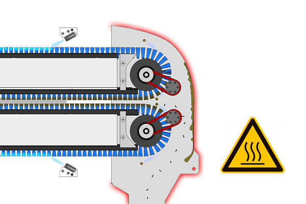 Az öntisztító egységben a lineáris kefék folyamatosan regenerálódnak, így alkalmasak a tartós ipari használatra. A sűrített levegős fúvókák és a forgó lehúzó penge folyamatosan tisztítják a kefeszálakat, ami biztosítja az állandó, megismételhető tisztítási teljesítményt. Az Ingromat® tisztítószer a mosási ciklusok során elősegíti a kefék regenerálását. Opcionálisan elérhető a termikus öntisztítási funkció is, amely során az elszívócsatorna és a kefék visszafordítási zónája felfűtésre kerül, hogy a száraz kenőanyagokat folyékony állapotba hozza, és azokat – igény esetén – ciklon szűrőkben el lehessen választani az elszívott levegőtől.