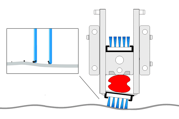 A lineáris kefék pneumatikusan szabályozott, rugalmas nyomáspuffereken helyezkednek el. Ezek a pufferek kiegyenlítik az anyagvastagság változásait, és állandó törlőerőt biztosítanak még hullámos fém szalagok esetében is. A párhuzamos vezetés megakadályozza, hogy a kefék a gyorsan mozgó szalagok irányába megdőljenek, így a kefeszálak mindig merőlegesen, meghajlás nélkül érintkeznek a felülettel, ami kiváló tisztítási eredményt garantál.