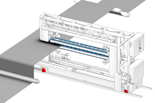 A C-alakú védőkerettel és görgős alvázzal ellátott kivitel lehetővé teszi, hogy a Cevomat® még bevezetett lemezszalag esetén is könnyedén kihúzható legyen a gyártósorból. Így a karbantartás a folyamatos termelés során is gyorsan és egyszerűen elvégezhető.